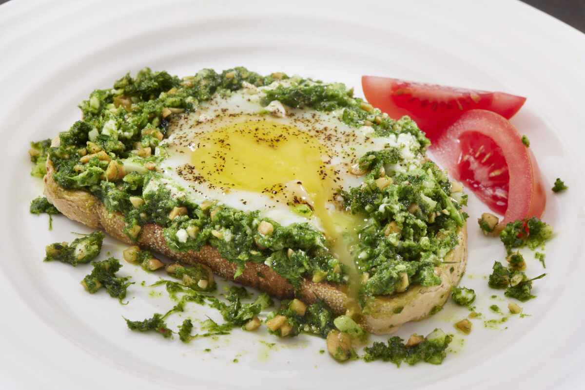 Τα τηγανητά αυγά με σάλτσα πέστο πάνω σε προζυμένιο φρυγανισμένο ψωμί, είναι…