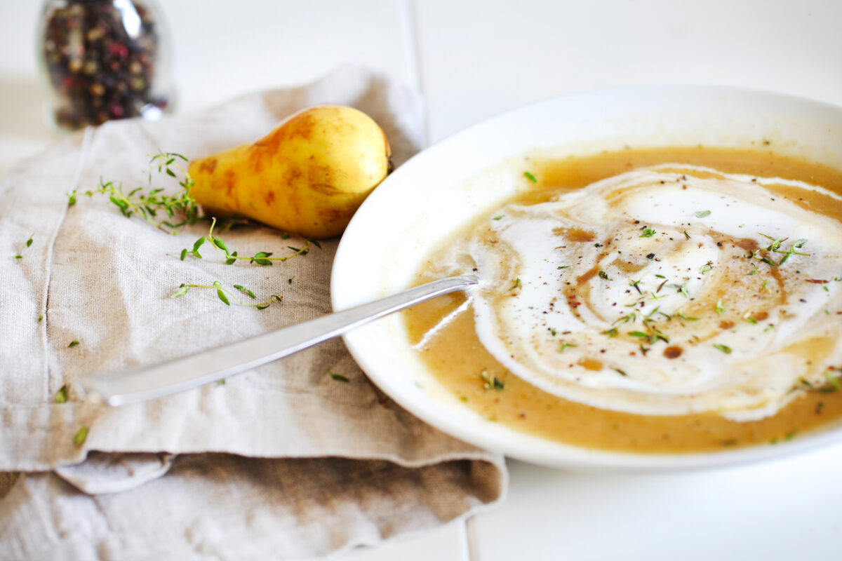 Συνταγή για σούπα με κοτόπουλο αχλάδι και θυμάρι