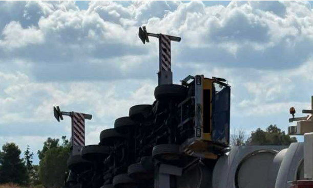 Ένας μεγάλος γερανός που είχε επιστρατευτεί για τη φόρτωση τμημάτων ανεμογεννητριών, ανατράπηκε…